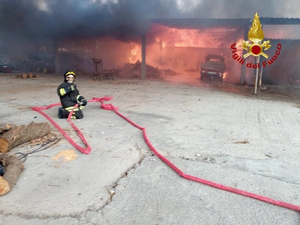 Incendio in una legnaia a Sanluri, tragedia sfiorata: c’erano due bombole di gas