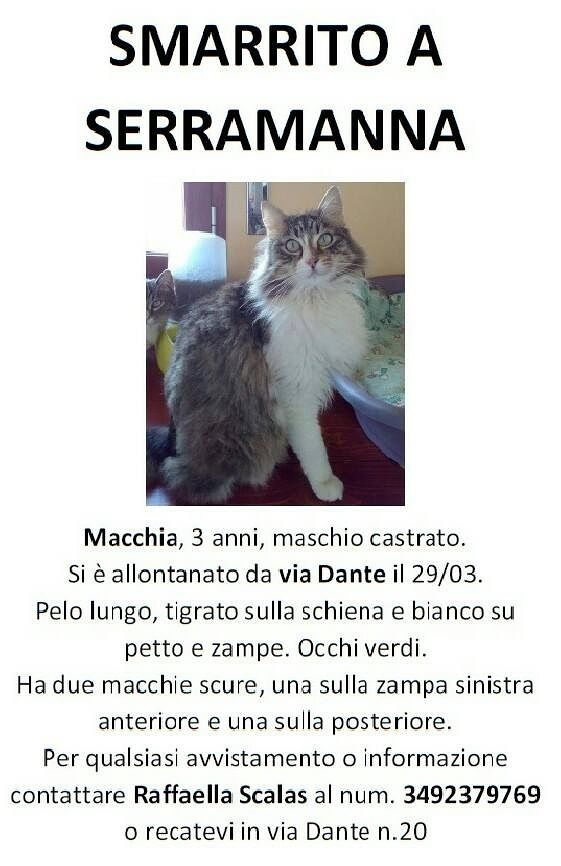 Smarrito da via Dante a Serramanna. La padrona lancia un appello per ritrovarlo