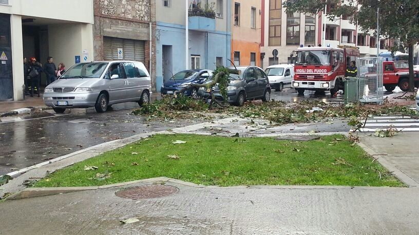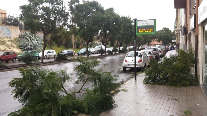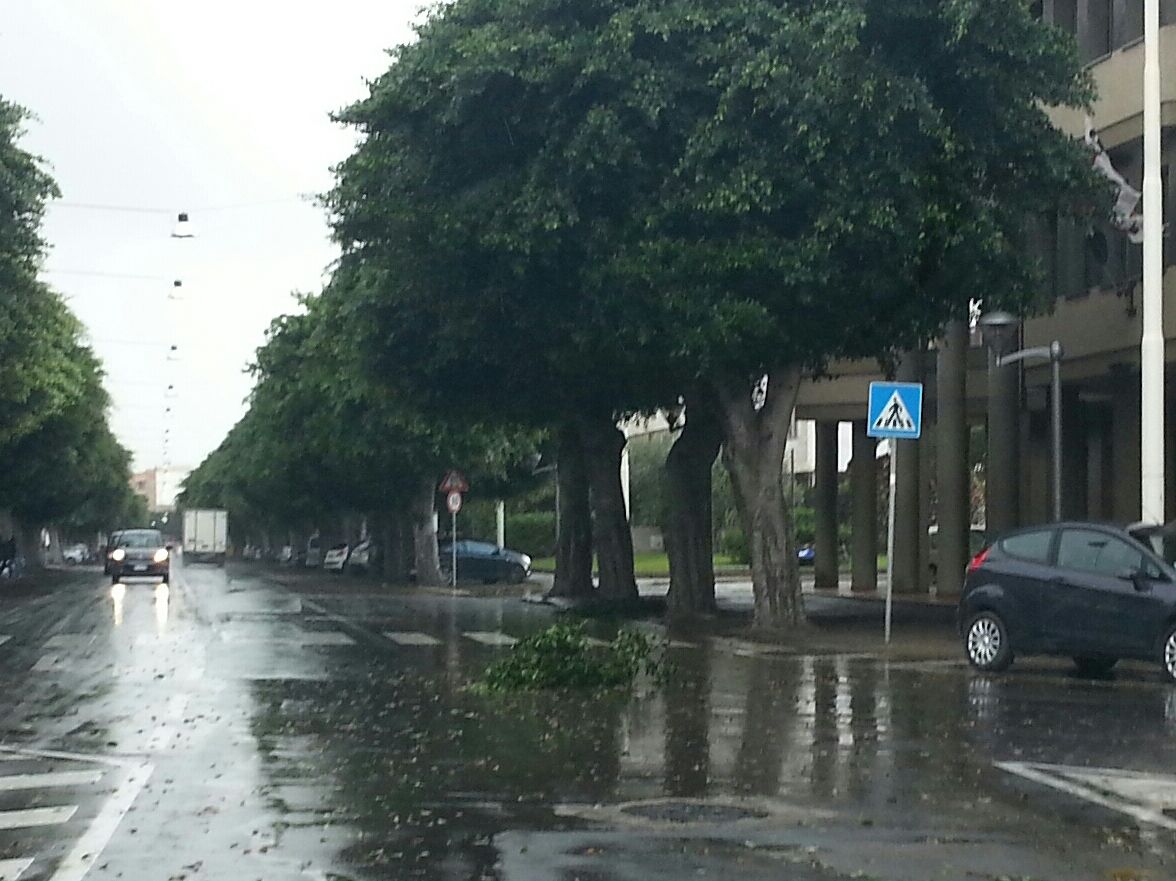La foto in diretta: emergenza maltempo a Cagliari, fronde degli alberi cadono sull'asfalto in viale Trieste