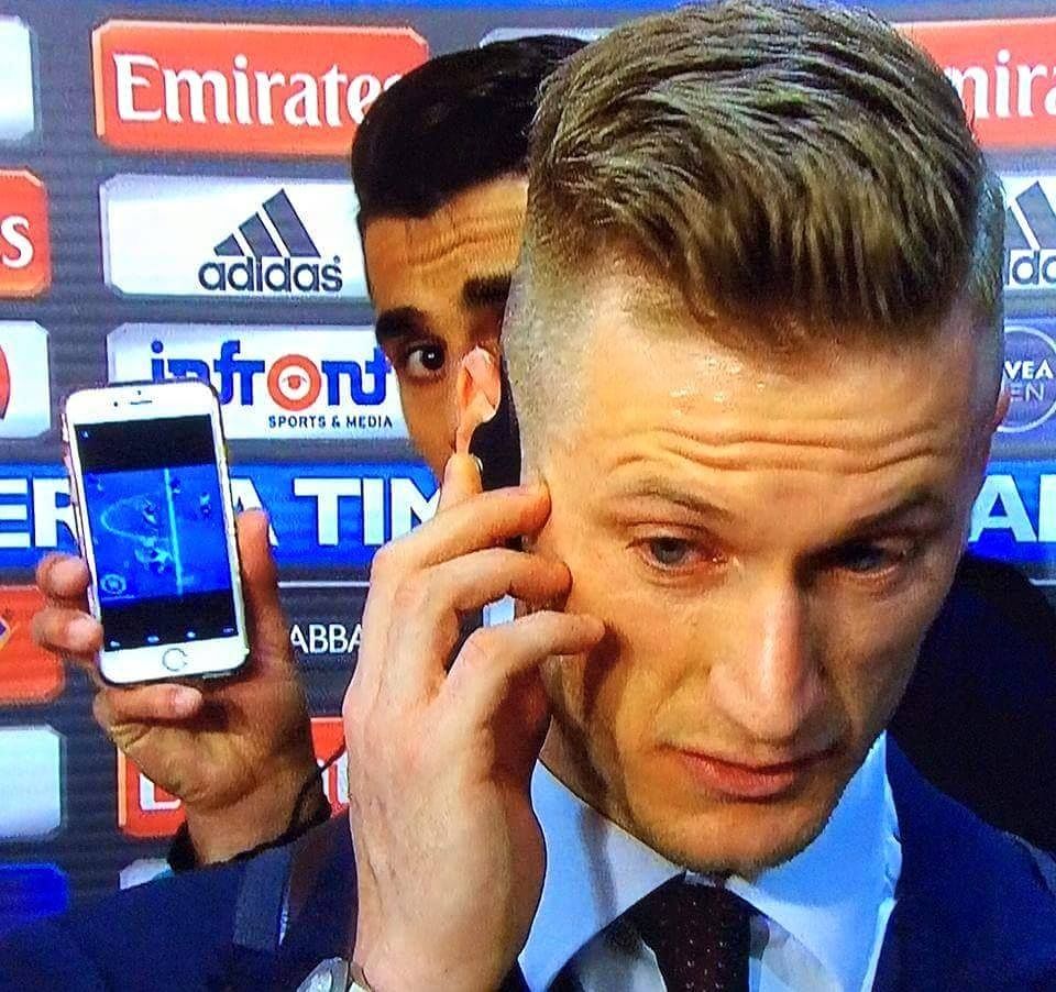 La "mano" del centrocampista rossoblù mostra in diretta Sky il rigore inesistente regalato al Milan