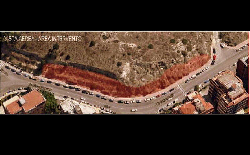 Operai al lavoro per la messa in sicurezza del costone di Monte Urpinu che si affaccia sulle vie Dexart e ...