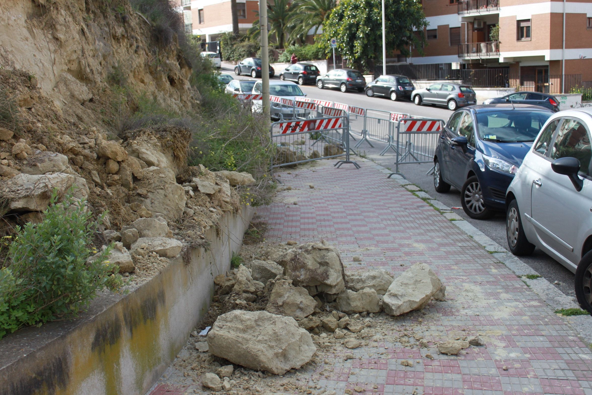 Grossi massi in mezzo al marciapiede ceduti probabilmente dopo il maltempo di questi giorni