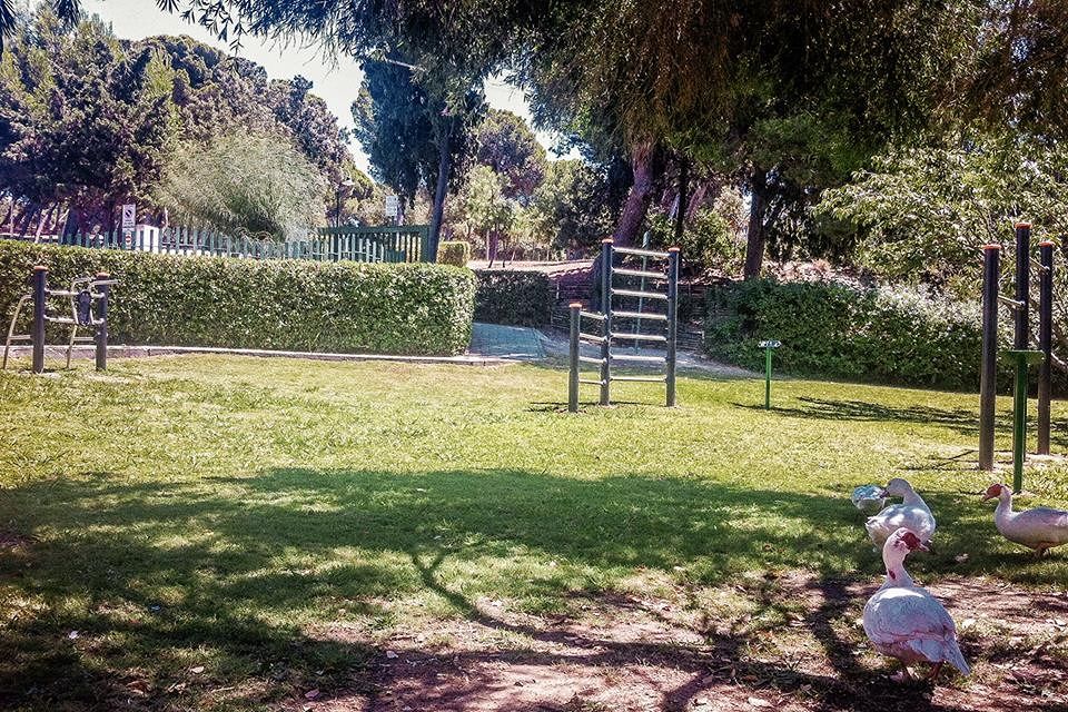 Attrezzi ginnici per fare sport nel parco di Monte Urpinu. L'assessore Frau ironico: anche le oche sono entusiaste