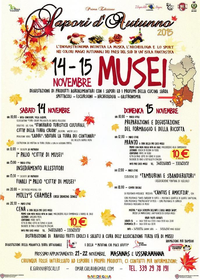 La manifestazione si svolgerà nel fine settimana del 14 e 15 Novembre 2015: un mix di gastronomia, musica, archeologia e sport