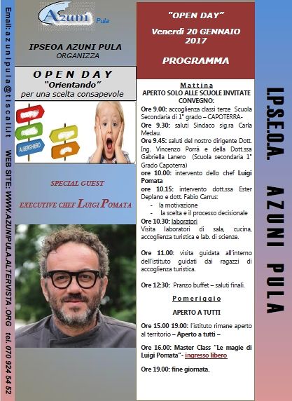 Il celebre chef, protagonista del secondo open day all'Istituto Alberghiero di Pula.