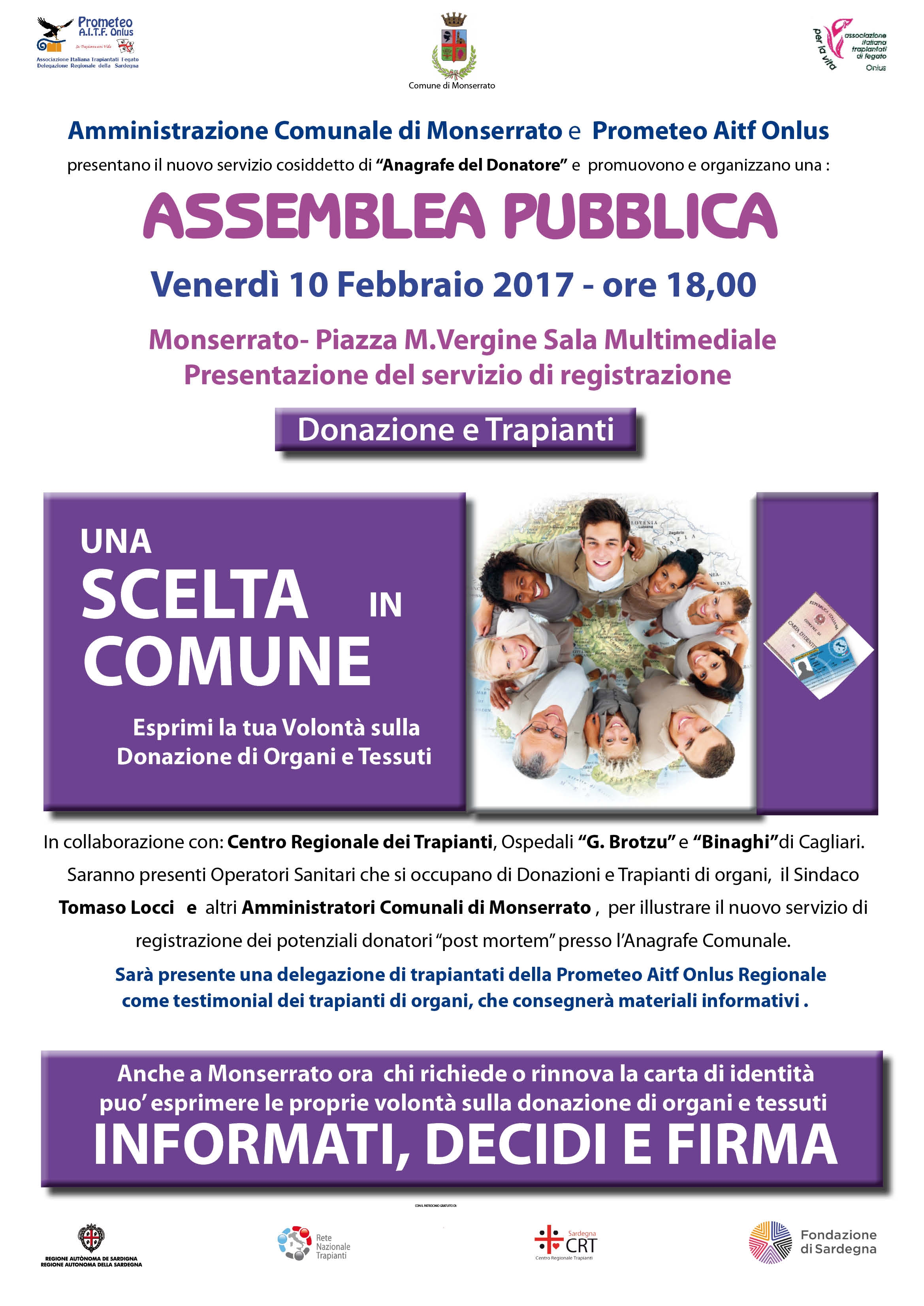 Venerdì 10 febbraio, l'associazione trapiantati e il comune organizzano un'assemblea pubblica per illustrare il servizio che consente di dichiararsi donatori ...