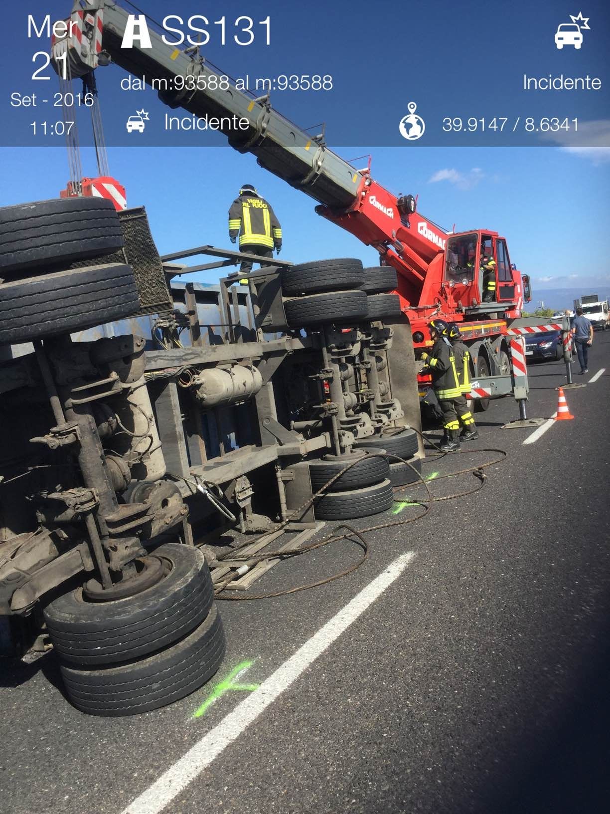 Traffico rallentato al km 93,000 su un tratto della strada statale 131 ‘Carlo Felice’ in direzione Cagliari