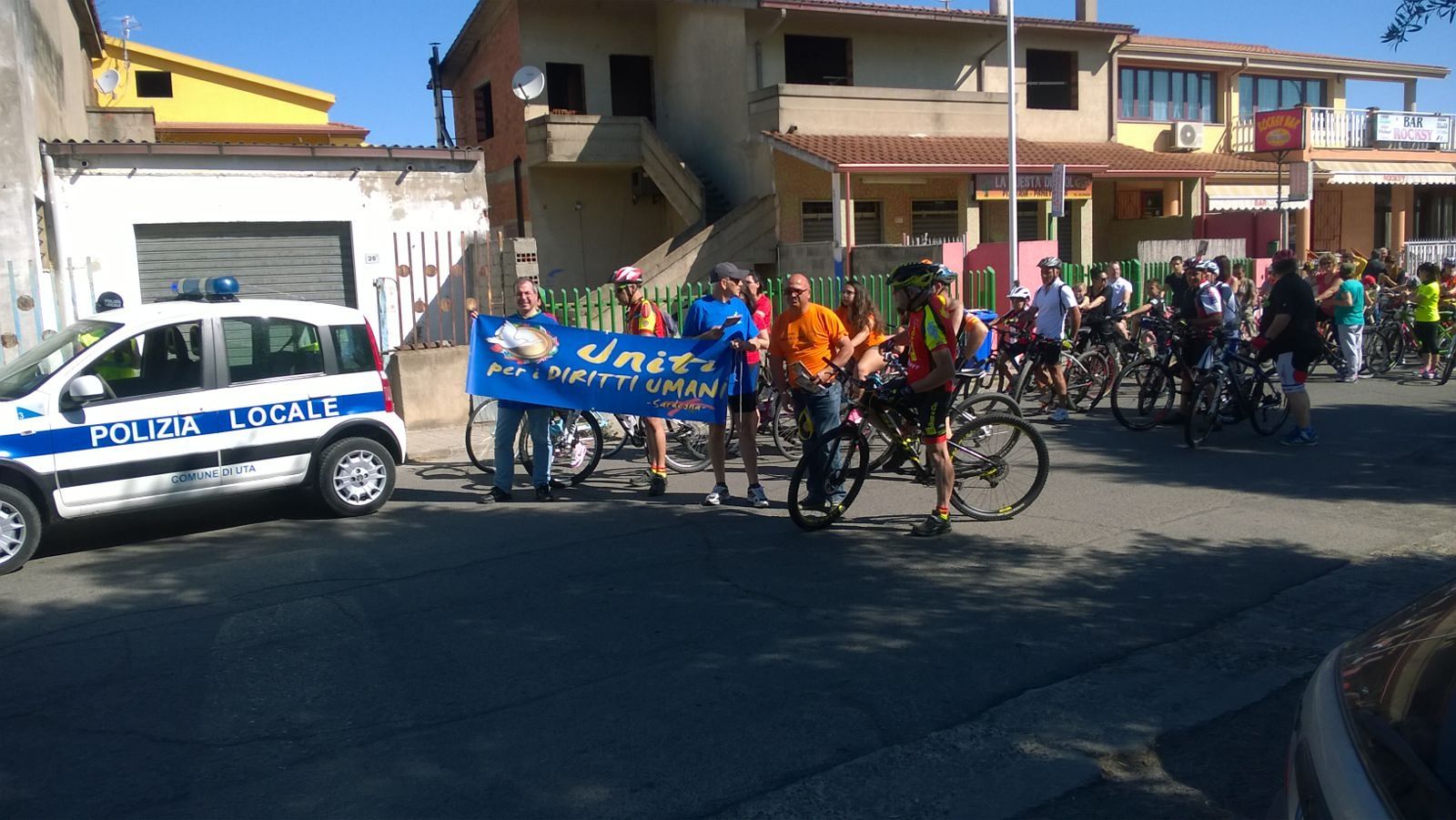 Bambini, anziani e ciclisti di ogni età tutti insieme a Uta per pedalare in nome dei diritti umani e della ...