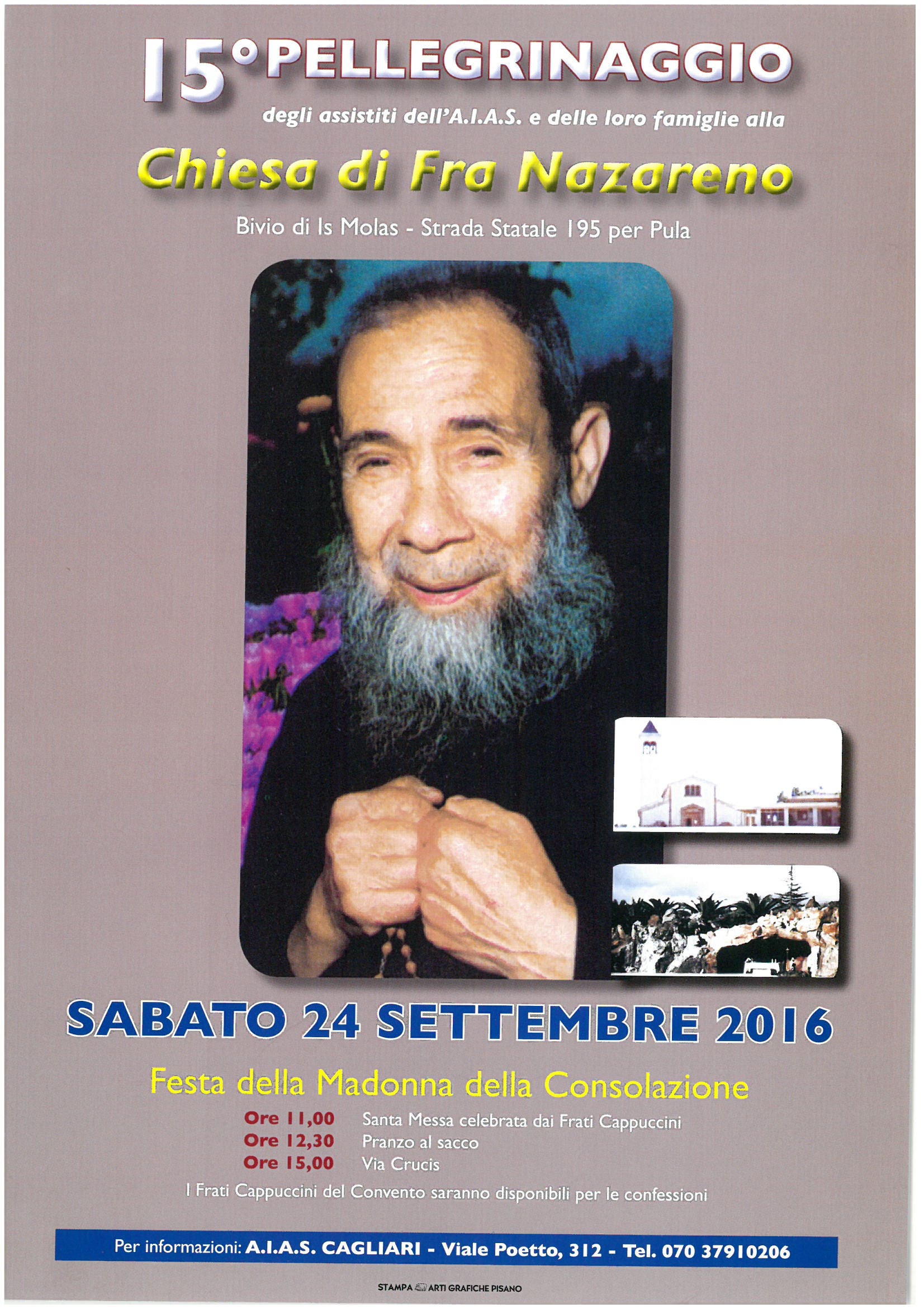 Anche quest’anno l’Aias promuove, il 15.mo Pellegrinaggio degli assistiti e delle loro famiglie alla Chiesa di Fra Nazareno