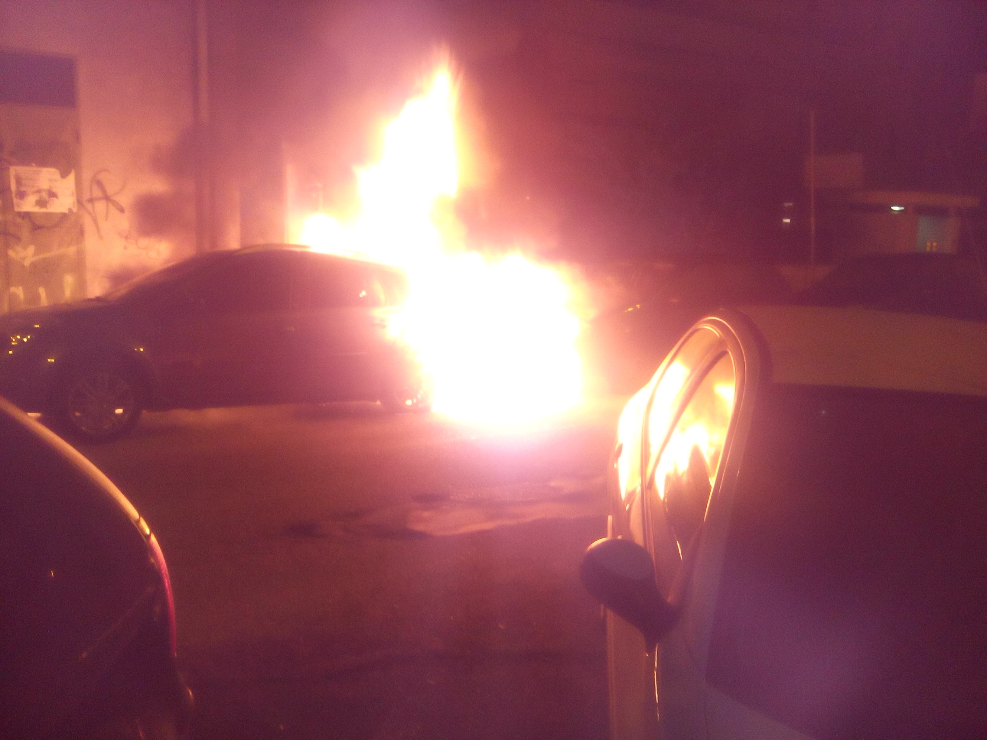 La foto scattata da un nostro lettore mostra il rogo delle auto "in diretta"