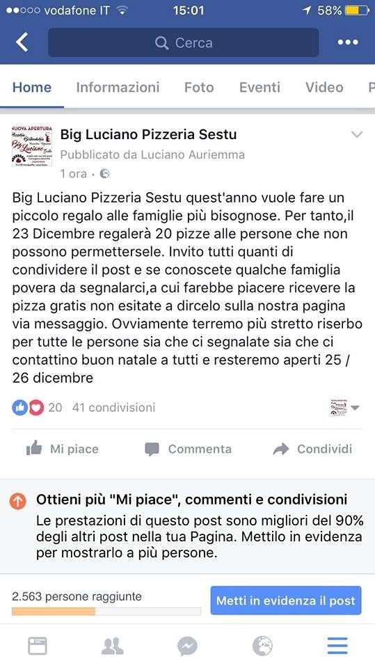 Il bel gesto del pizzaiolo Luciano Auriemma a Sestu: "Regaliamo le pizze per Natale alle famiglie che non possono permettersi ...