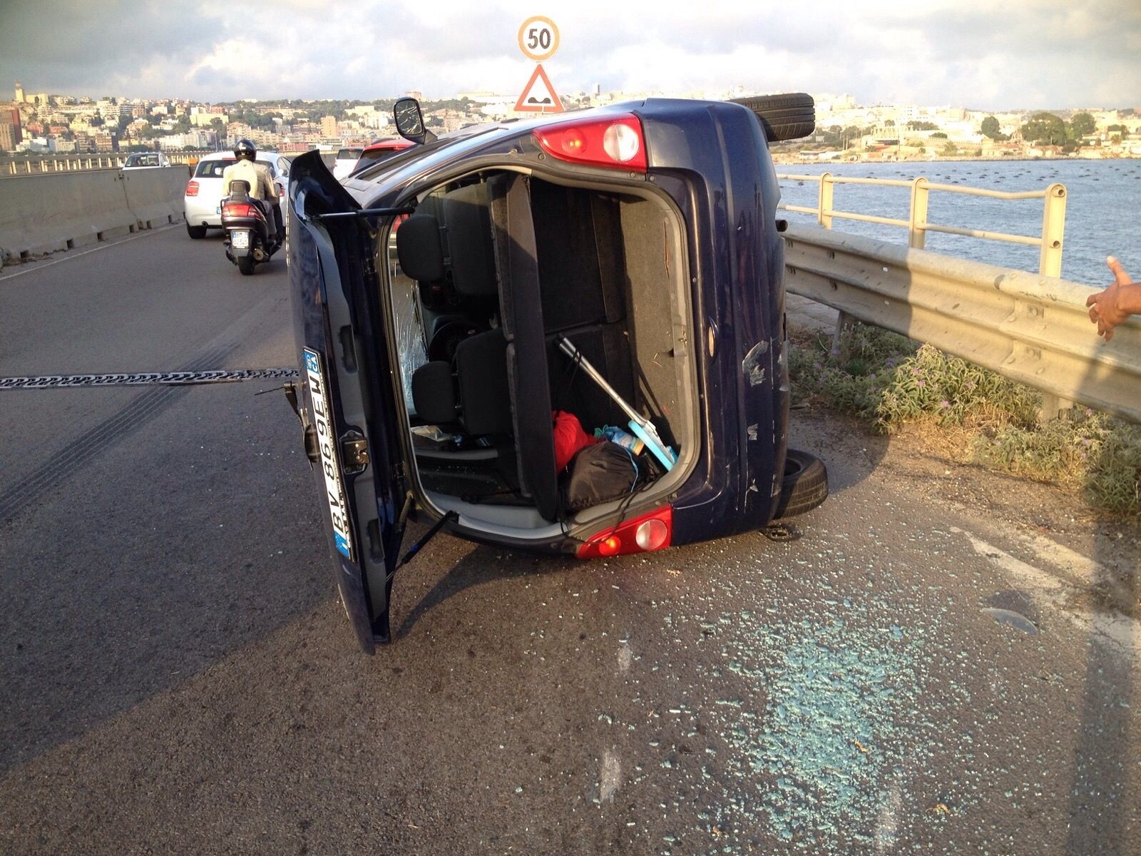 Rocambolesco incidente al ponte della Scafa, miracolosamente illesi due fidanzati cagliaritani