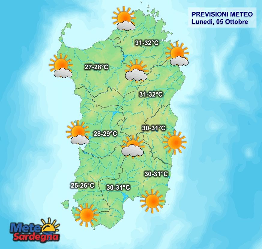 I valori più alti verranno registrati nelle interne centro orientali, dal nord al sud dell’Isola