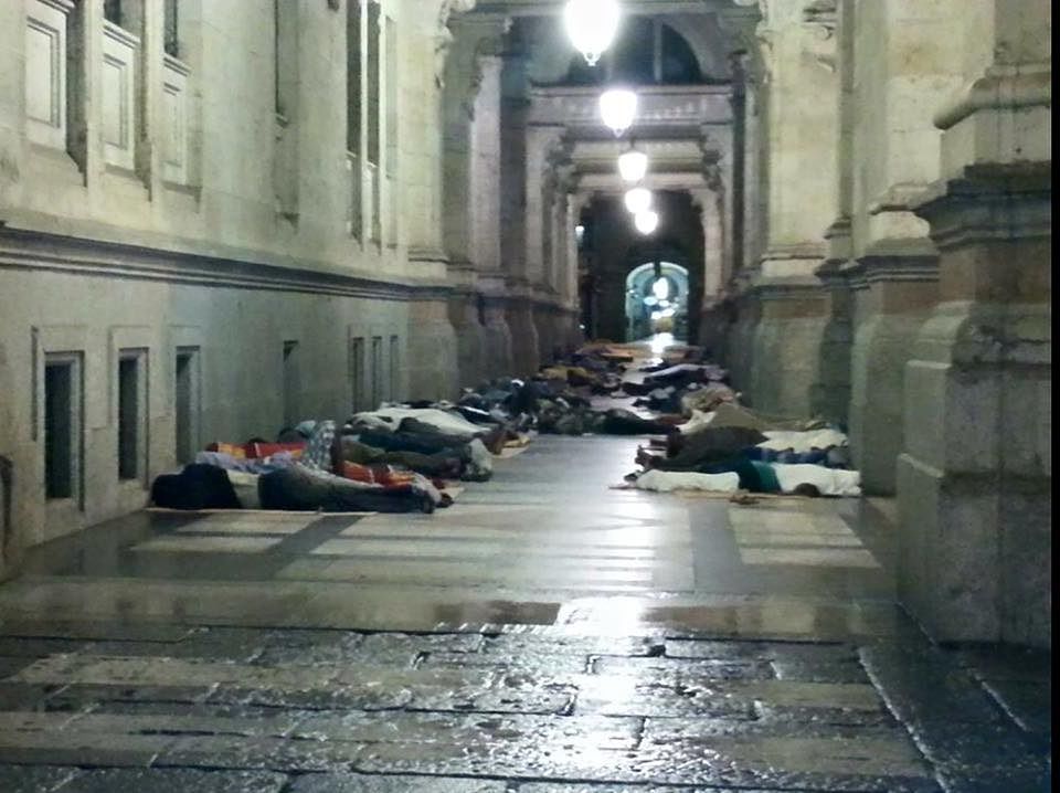 Decine di profughi accampati nella notte sotto i portici di via Roma. Stamattina la protesta davanti al Municipio al grido ...