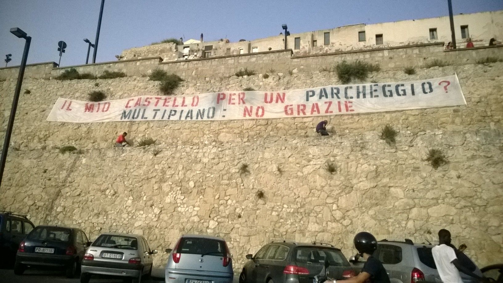 Un messaggio per salvare le mura su uno striscione di 25 metri mostrato collettivamente da una cinquantina di persone