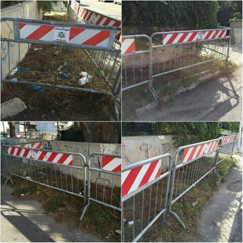 Incredibile esempio di noncuranza: tre anni dopo la segnalazione fatta dai residenti, le transenne sono ancora al loro posto