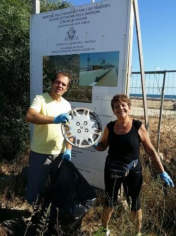 Volontari in azione nel pomeriggio nella spiaggia del porticciolo dei pescatori