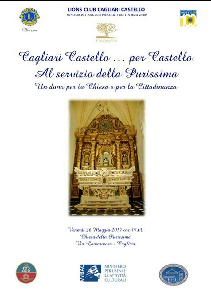 Il Lions Club Cagliari Castello il 26 maggio alle 19, guidato dal suo Presidente dott. Sergio Virdis, donerà alla Chiesa ...