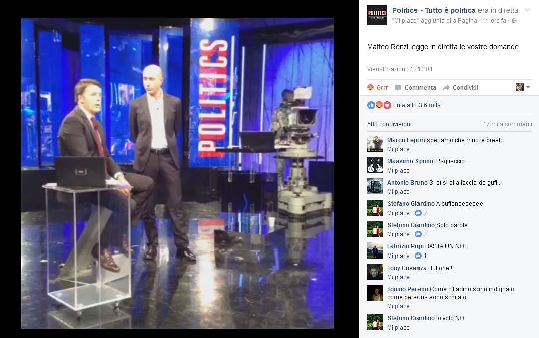 Senza risposta la domanda a Renzi del sindaco di Barrali nella trasmissione Politics