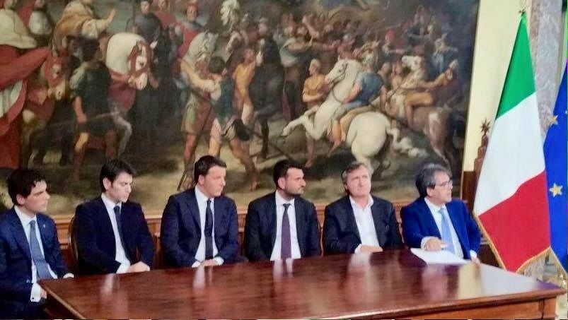 Il sindaco Zedda siede al fianco di Renzi nella conferenza stampa di oggi a Roma