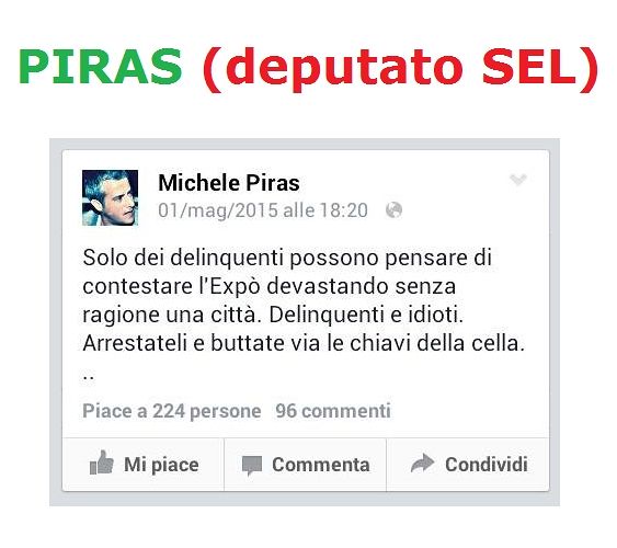 Clamoroso autogol del deputato di Sel Michele Piras: "Arrestate gli idioti di Milano e buttate via le chiavi della cella". ...