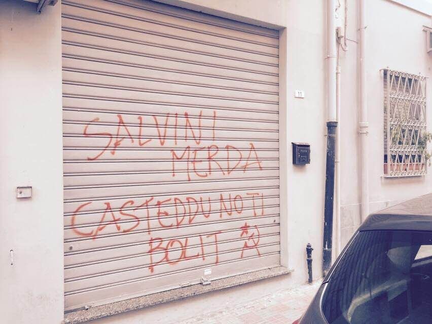 Sale la tensione a cagliari in vista del voto. Imbrattata la sede di Fratelli d'Italia con scritte anti Salvini: "Comune ...