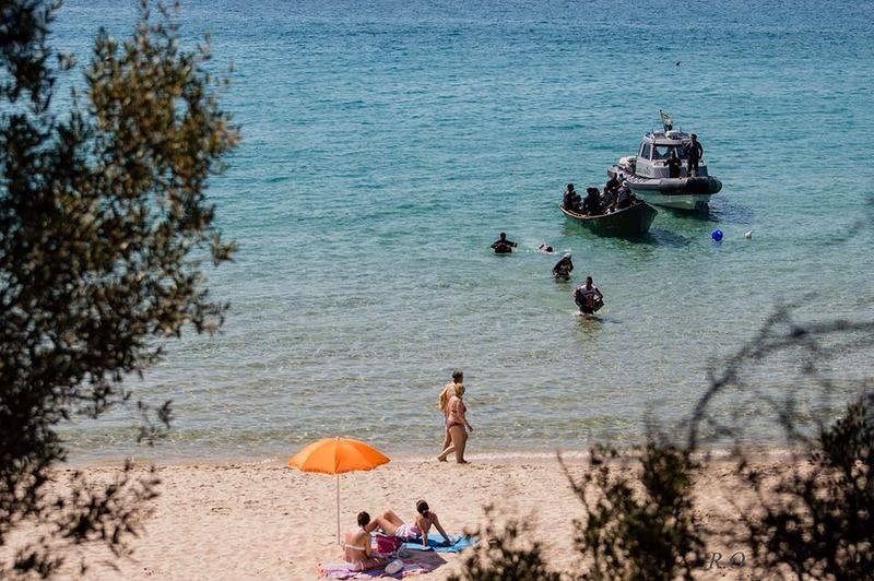 Lo sbarco all'Abamar, a due passi dal Forte Village, di venti "disperati" su un barcone accanto ai bagnanti