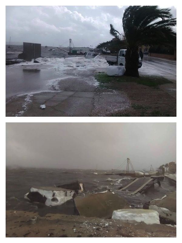 Vento e forti ondate a Sant’Antioco: distrutti alcuni ponteggi