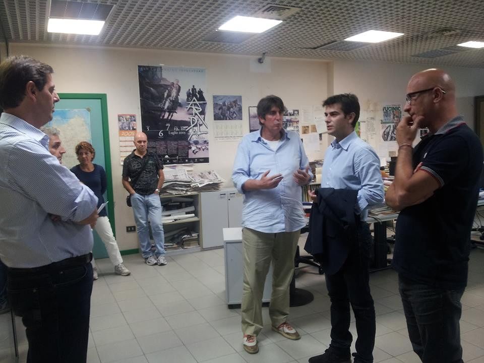 Il sindaco incontra i lavoratori dell'emittente cagliaritana per portare la sua solidarietà