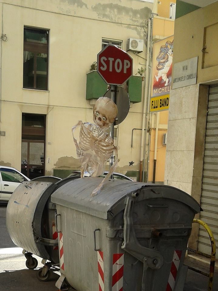 Lo scherzo di un abitante di San Benedetto provoca l'ironia dei residenti: "Quello scheletro pupazzo non sarà mica il fantasma ...
