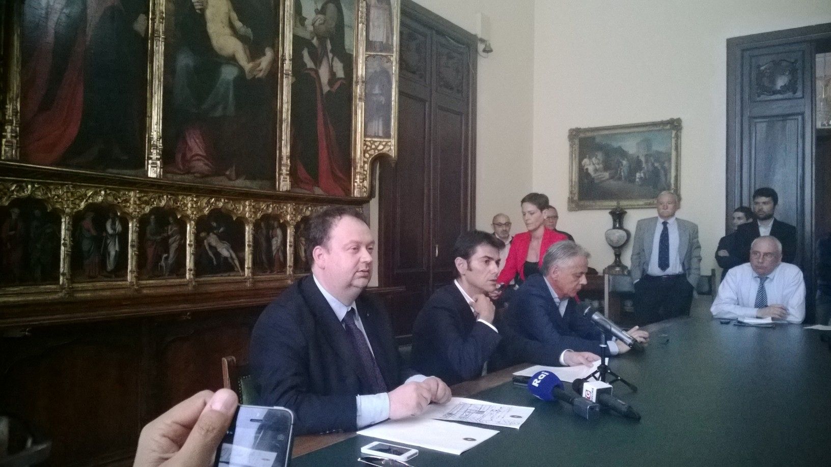 Forze dell'ordine davanti al Municipio, per fronteggiare l'eventuale "assalto" dei tifosi