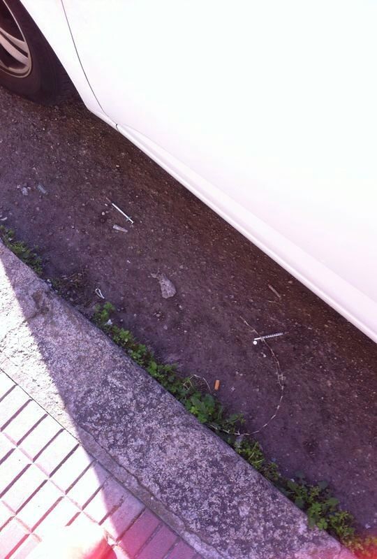 Via Liguria, siringhe insanguinate incollate ai cestini per strada