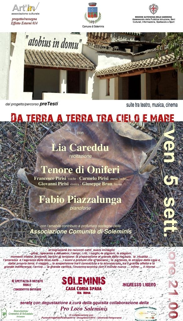 Suite tra teatro, musica e cinema venerdì 5 settembre presso la Casa Corda Spada a Soleminis