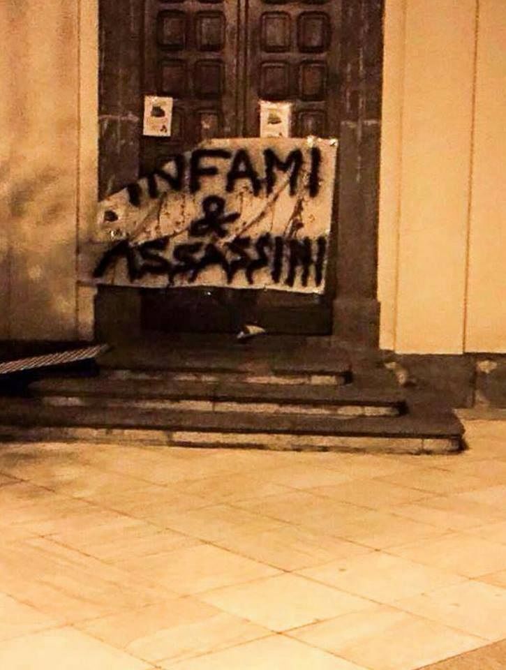 Nella notte uno striscione nella porta della Parrocchia: "Infami e assassini". Il paese non ci sta e anche gli animalisti ...
