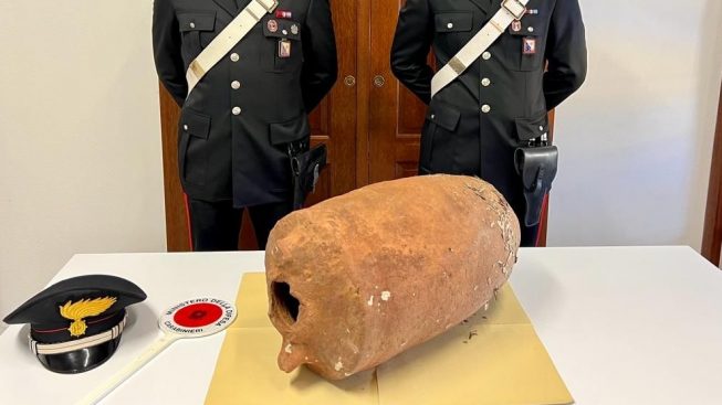 Il reperto quasi totalmente integro e perfettamente conservato immerso in pochi centimetri d’acqua. L’area è vigilata dai carabinieri per evitare ...