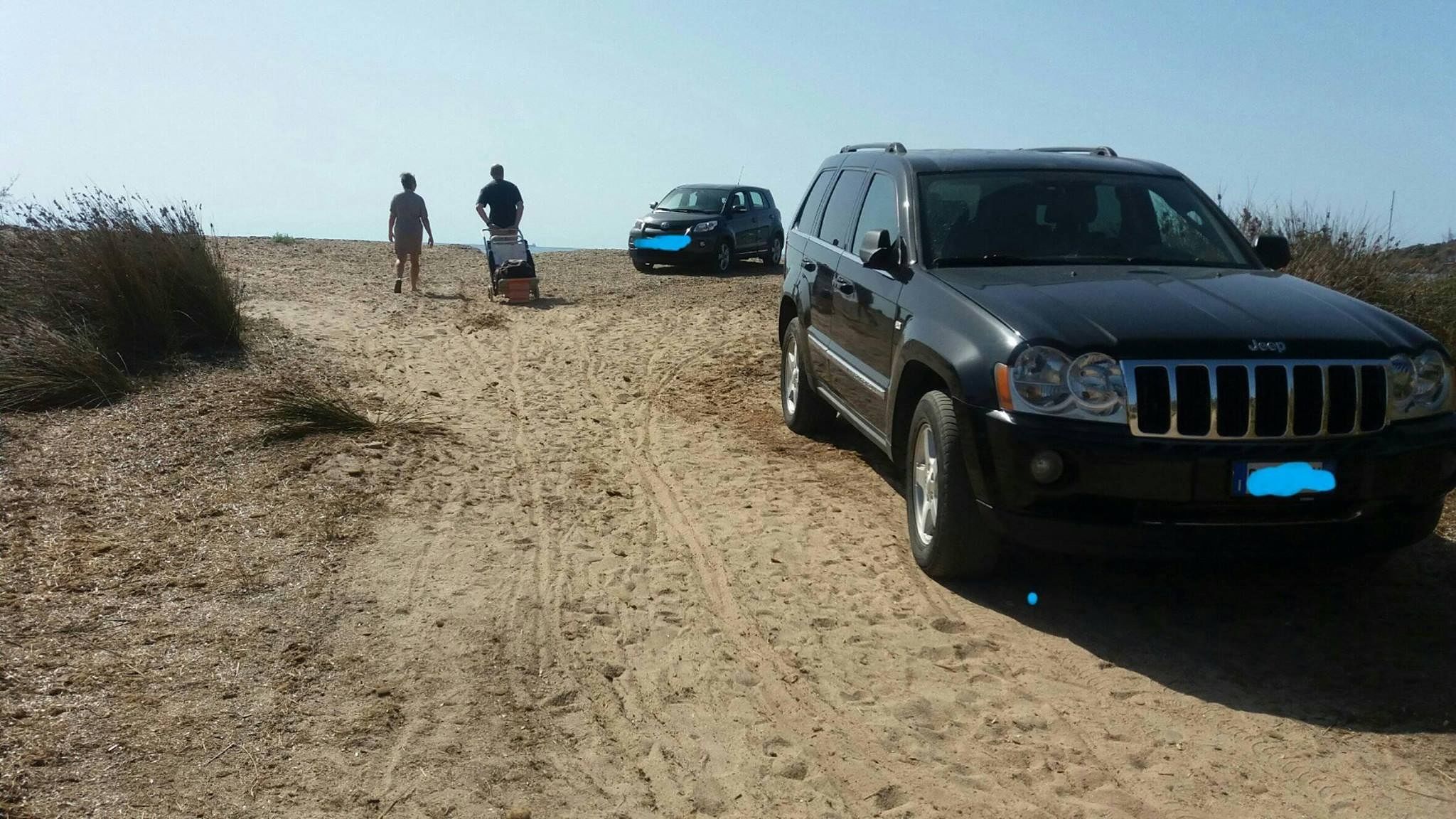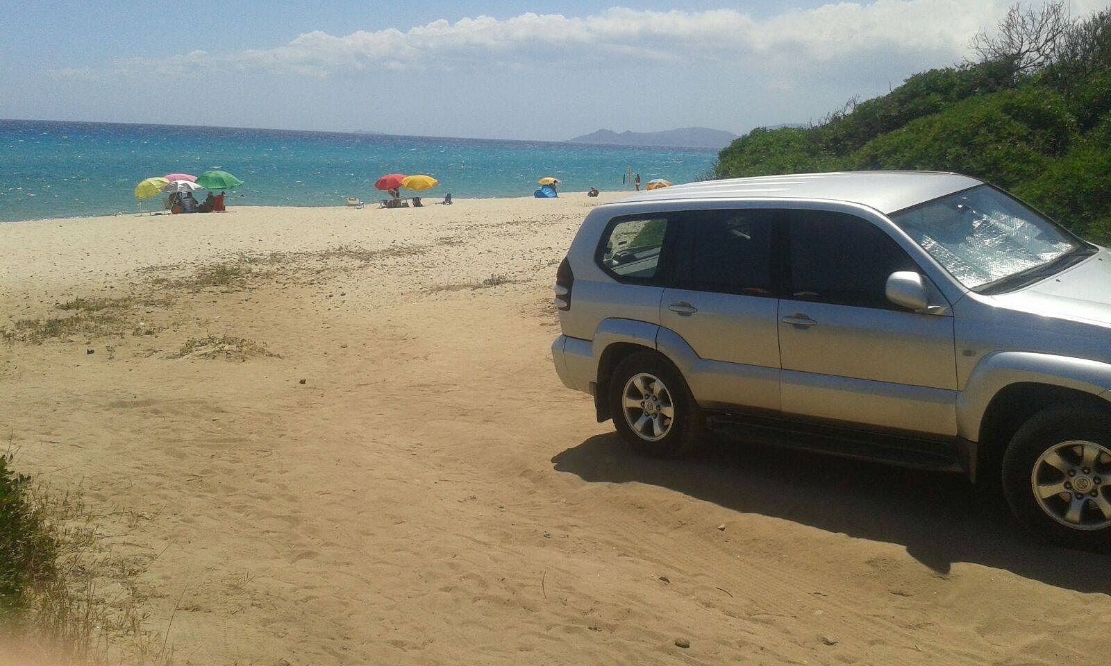 Il Suv dei ricchi turisti viola la spiaggia di Nora, entra con le gomme tutte nella sabbia: scendono per un ...