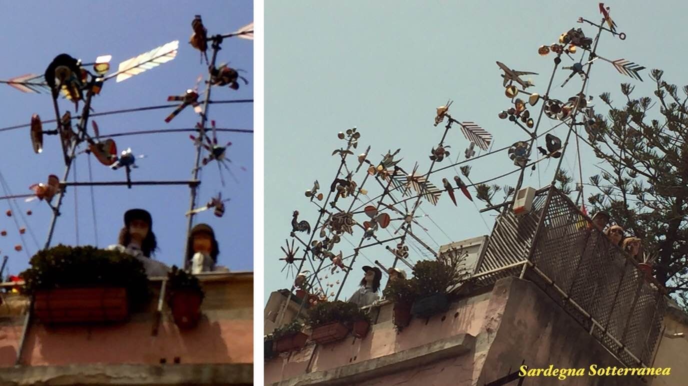 Girandole mosse dal vento, galletti di latta posizionati su aste metalliche, rose dei venti...