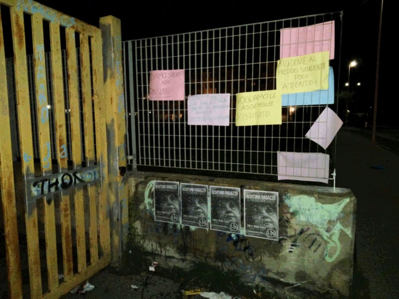Blitz nella notte di Lotta Studentesca nelle scuole "congelate" di Cagliari per protestare contro il mancato funzionamento del riscaldamendo in ...