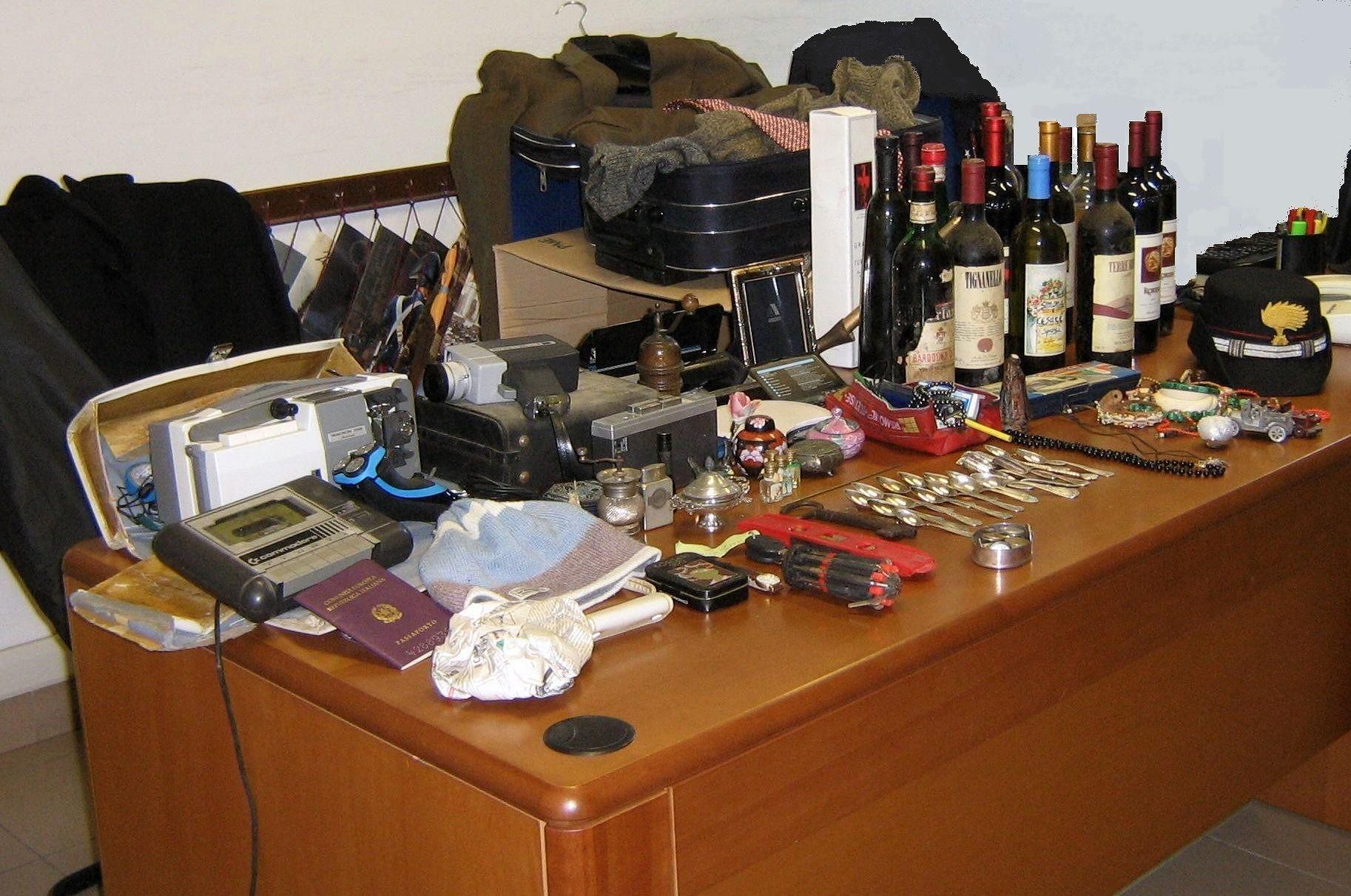 Parte del bottino recuperato a seguito di una perquisizione domiciliare di un pregiudicato del luogo