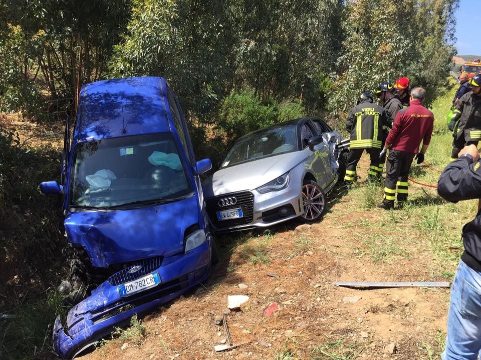 Rocambolesco incidente sulla strada per Uta, un'Audi e una Kia si scontrano: tre i feriti