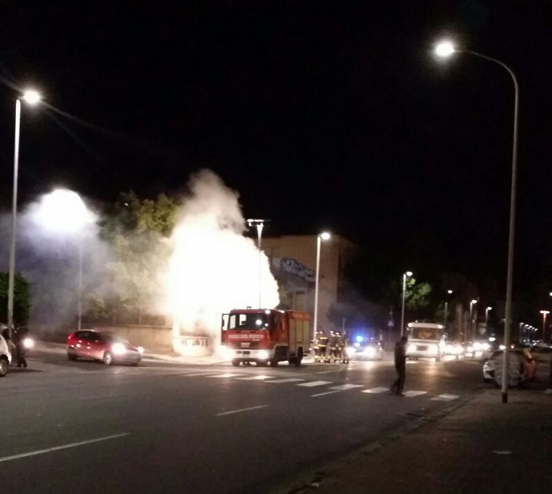 Le fiamme divampate nello sterrato davanti alla fermata dell'autobus