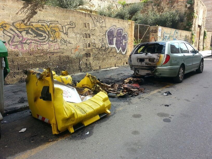 Vandali nella notte in via Mameli: fuoco nel cuore del centro storico