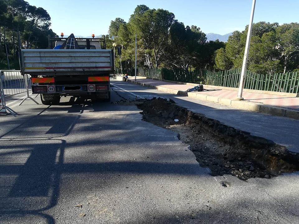 A causa di una crepa lunga 25 m profonda 80 cm creatasi nel viale Europa, la strada è stata transennata ...