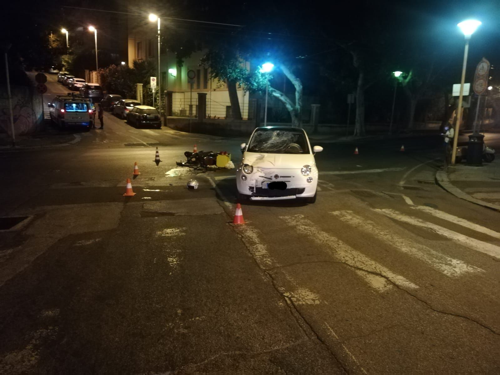Incidente in viale Merello a Cagliari, scontro tra scooter e Fiat 500: gravissimo un portapizze