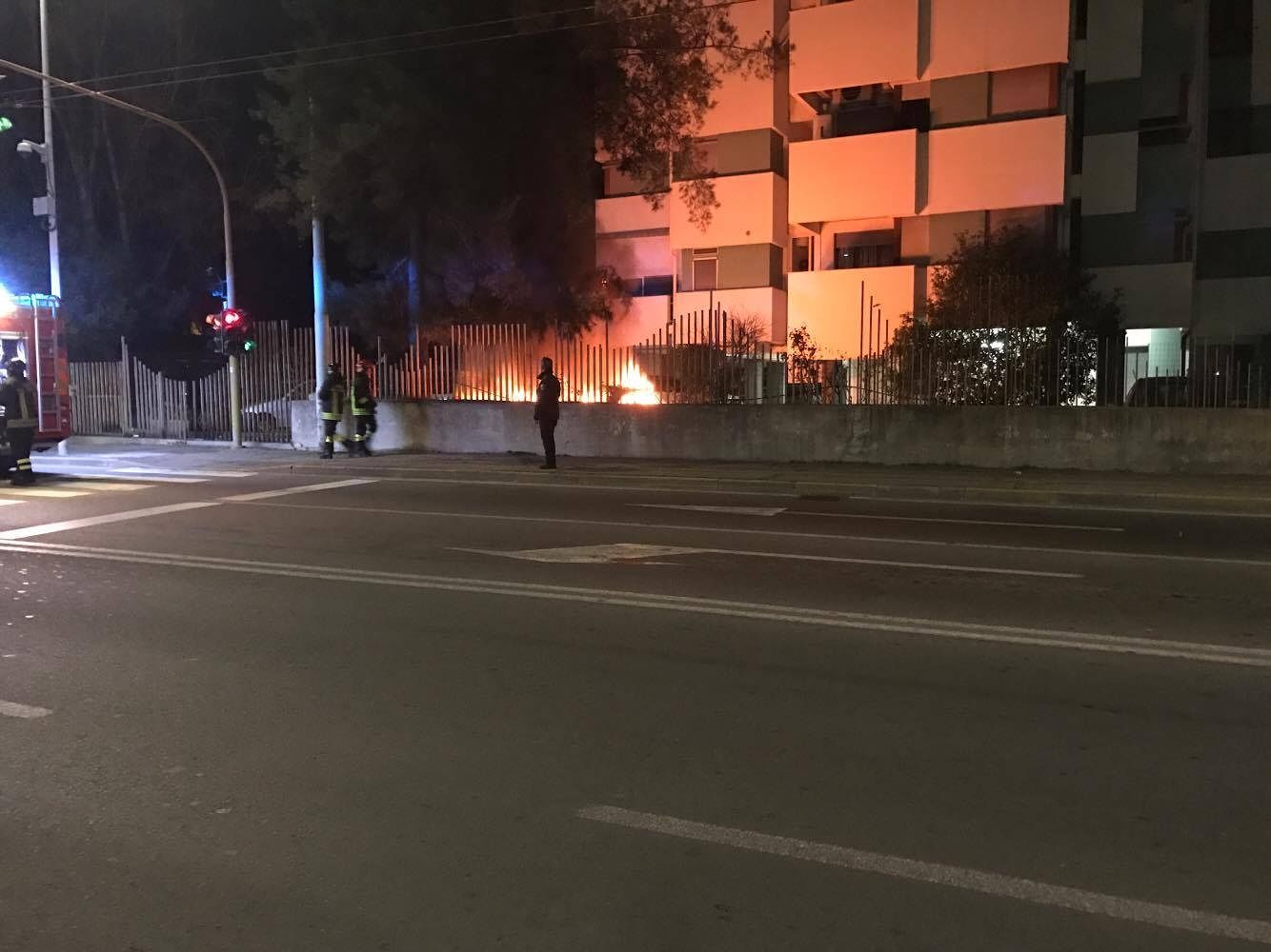 Fiamme all'alba in via Tigellio. Il VIDEO di un nostro lettore