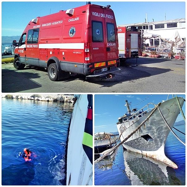 Intervento dei Vigili del Fuoco del Distaccamento del Porto per mettere in sicurezza la barca-ristorante che stava imbarcando acqua e ...