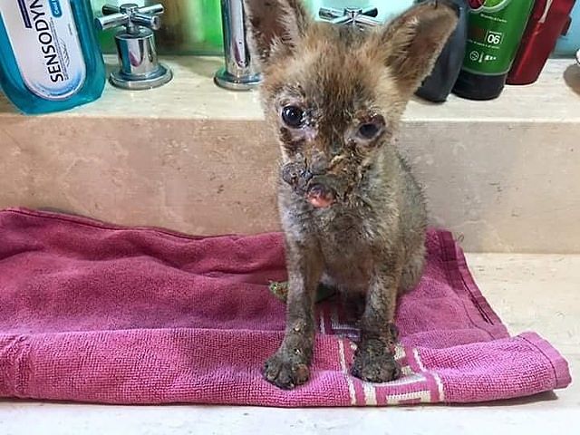 La cucciola di volpe di circa un mese e mezzo era stata trovata ustionata e intossicata dal fumo, durante un ...