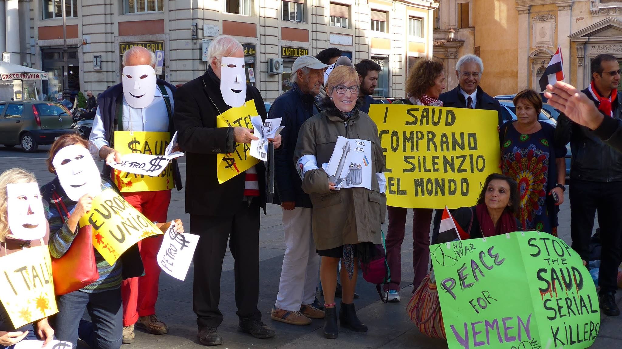 Il Presidio Piazzale Trento sabato 3 dicembre manifesta contro la produzione sardo tedesca delle bombe destinate allo Yemen che stanno ...
