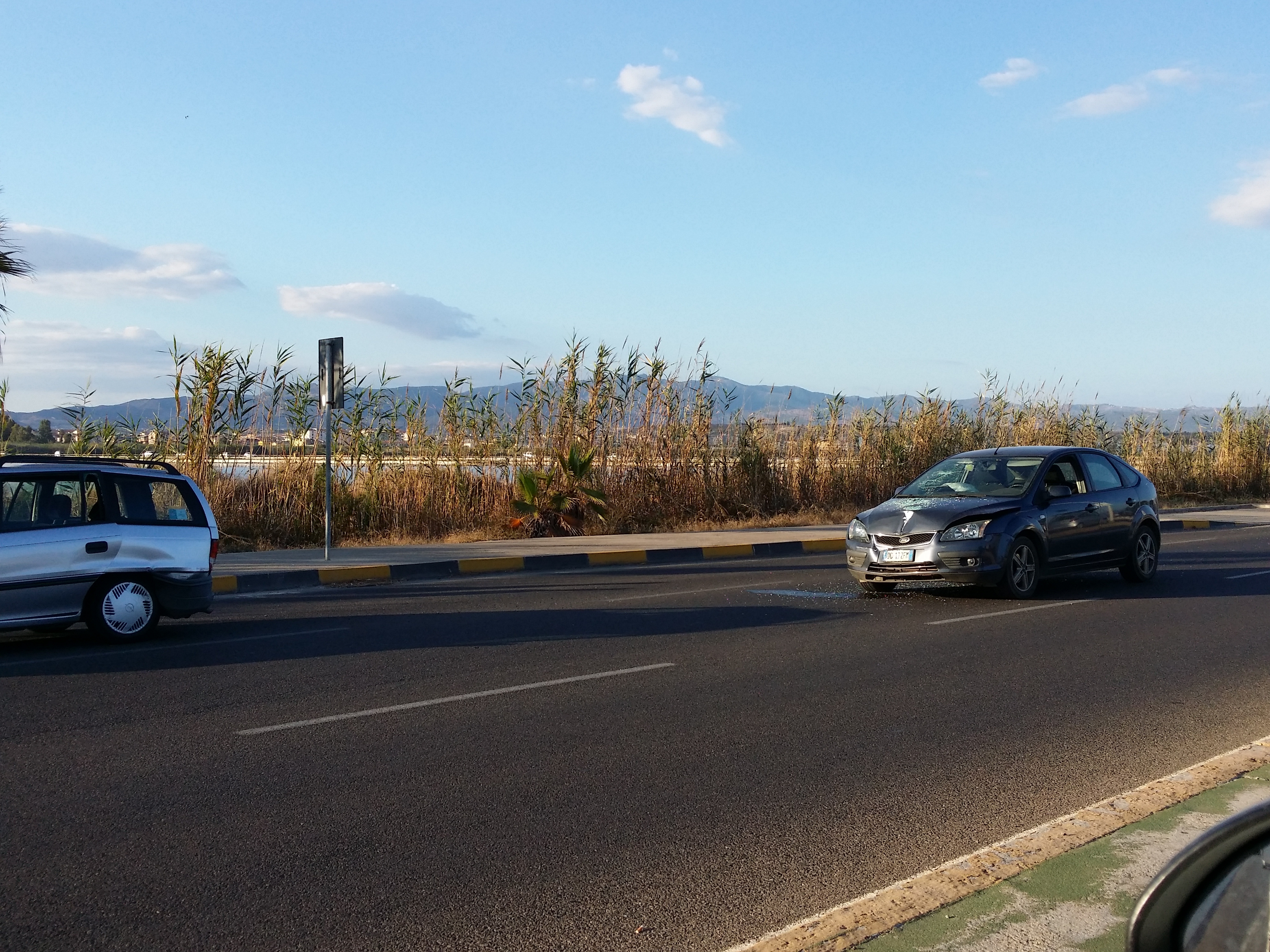 Violento tamponamento in Viale Poetto al semaforo dell’attraversamenro pedonale dalla Bussola verso Cagliari. Una Station Wagon Opel Astra ed una Ford Focus si sono scontrate, due i feriti per fortuna non gravi. Filippo Pau.