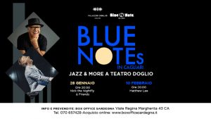 La rassegna “Blue Notes in Cagliari” nasce dalla collaborazione tra Teatro Doglio ed il celebre Blue Note Milano e sancisce l’inizio di un connubio che porterà la grande musica internazionale nell’Isola. Il Blue Note Milano è infatti parte del network Blue Note, uno dei jazz club più famosi al mondo, insieme allo storico Blue Note Jazz Club del Greenwich Village di New York, ai Blue Note di Tokyo, Nagoya in Giappone, Pechino in Cina, ed ai Blue Note di Honolulu alle Hawaii, Rio de Janeiro e Napa in California. Jazz e non solo nel Teatro di via Logudoro: si parte sabato 28 gennaio alle ore 20:00, dunque, con “Nick the Nightfly & Friends feat. Simona Bencini & Maggie – Hey! Mr. Bacharach” e si continua venerdì 10 febbraio con “Matthew Lee”. È previsto sia il biglietto singolo che l’abbonamento per le due date, uniche tappe a Cagliari e in Sardegna.